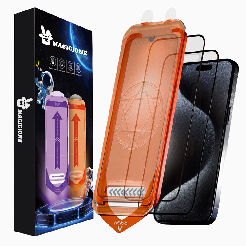 Chroń swój iPhone za pomocą wysokiej jakości szkła ochronnego MAGIC JONE o twardości 9H. Ochrona przed upadkami na poziomie wojskowym, zastosowanie, konfiguracja do etui i instalacja. (🔥Ograniczona czasowo zniżka 10%: tylko dla nowych klientów.)